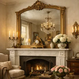 Vintage Baroque 40"x30" Ornate Mantel Mirror